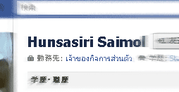 ローマ字で「ふんさしり」なんて書かれていると 「糞さ尻」というイメージだが、勤務先(読めない)を見る限り、タイ語っぽい。
