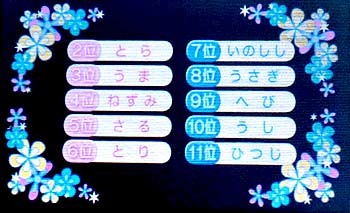 小学生などは、クラスで全員が同じ結果にあることもある、 ニンテンドーDSの干支占いについて。