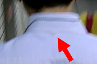 すごくぶれた写真なので見にくいとは思うが、 なんとサラリーマンの首の下に10粒ほどご飯粒がついていたのだ。