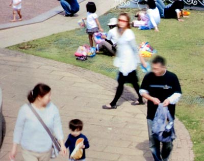 なんと、公園の写真に写っている人、全員の顔が見事に「ぶれた」状態になっていたのだ。 上の写真ではわかりにくいが、母親と子供の写真もぶれている。