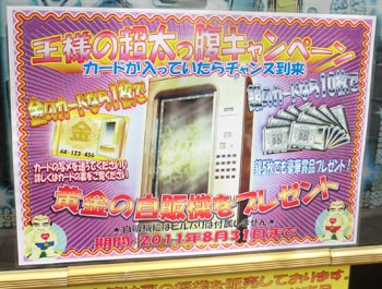 そこに書かれていたまさかの商品、 「黄金の自販機をプレゼント」。