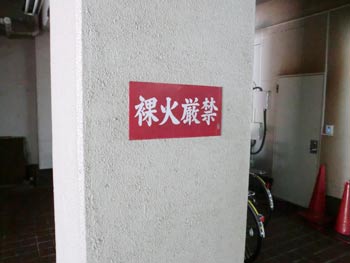 裸火厳禁。 あまり見ないタイプの注意書きだが、もし不慮の事故で 二文字目が消えてしまったりしたら、ユーザーに対する見え方はこうなるだろう。