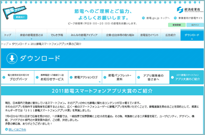 ■ 2011節電スマートフォンアプリ大賞 (この記事への固定リンク) 経済産業省が行っていた「節電アクション」というサイト。