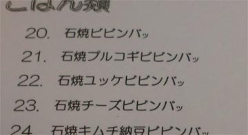 ■ 石焼ビビンバ。 (この記事への固定リンク) 韓国料理屋さんのメニューを見ていた。 「石焼ビビンバ。」と、わざわざ「。」がついている部分が気になったのだが・・・。