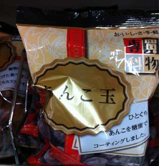 もちろん、「あんこ玉」という商品なのだが、パッケージのゆがみが絶妙で あたかも「別の何か」のように見えている。