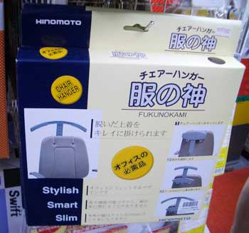 「福の神」とかけたダジャレなのだと思うが、 見るとイスに上着がかけられるだけのプラスチック。 さすがにこの機能で「神」を名乗るのは大きく出すぎていないだろうか。