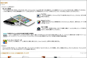 ■ 楽しい時間を (この記事への固定リンク) 最新型のiPodをAmazonで見ていた。 説明がやけに直訳っぽい日本語なので注目して読んでいたのだが、 途中に書かれていた文章がこれだ。