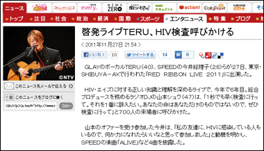 ■ 本日22:54〜ニュース放映決定 (この記事への固定リンク) 11月29日(火) 22:54〜日本テレビ系「NEWS ZERO」にて、 先日行ってきた『レッドリボンライブ 2011』が紹介されるとのことです!