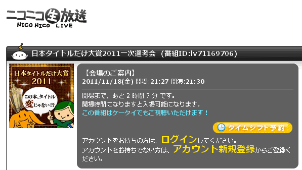 さて、 本日の9時半ころから、日本タイトルだけ大賞2011 一次選考会を放送します。