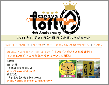 11/24、阿佐ヶ谷ロフトAにて、やまもといちろうさんと、 ネットビジネス系のイベントを行いますよ。