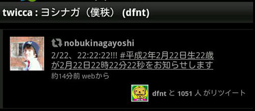 特に永吉さんの方は 「#平成2年2月22日生22歳が2月22日22時22分22秒をお知らせします」 というやばい感じのタグを考えたので、すごく話題になり、