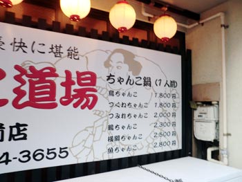 ■ 満たされたとき人は (この記事への固定リンク) 国技館のある両国にいった。 当然すもうに関する店や看板がたくさん並んでいたのだが、 中でも僕秩が注目すべきは「ちゃんこ」屋さんだろう。
