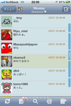 ■ 地震の時につぶやく言葉 (この記事への固定リンク) 昨年の4月から、地震が起こるたびツイッターに「おっぱい」と書いている。 その行為だけを見るとただの変態だが、 余震も落ち着き、皆の不安を再び駆り立ててしまう地震への対抗措置として考えたものだ。