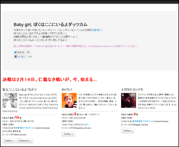 ※日付をクリックすると直接飛べます ※読み込みに少し時間がかかります。 ※URL末尾の#20120225などの日付タグに自動で飛ばない時は 左の日付を直接クリックしてみて下さいね。 |