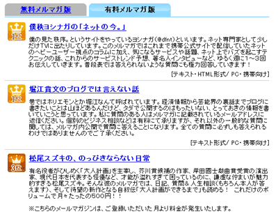 ■ メルマガ増加部数ランキングが1位に! (この記事への固定リンク) なんと、先週の「メルマガ増加部数ランキング」で僕秩メルマガが1位になっていました! 堀江さんと同率首位だったようです。