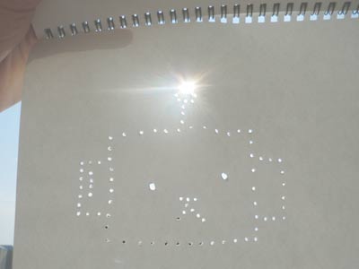 ・ ・ ・ ということで、 紙に穴を開けることで、世にも不思議な光を観察できるテクニック。 次回の金環日食は、2312年4月8日になります。