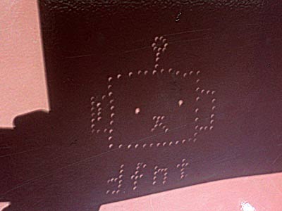 本当にかすかだが、浮かび上がる文字。 もしかすると、何か重要なメッセージをこちらに伝えようとしているのかもしれないので、 さっそく早速特殊な画像処理により、文字を読みやすくしたのがこちらだ。