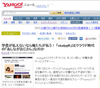 まずは「study gift」というサービスになりますが、 また詳細が発表できる段階でお知らせしたいと思います。