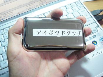 ■ 新しいiPodtouchと反応 (この記事への固定リンク) 新しいiPodtouchを買った。 僕は「ケースをつけない派」なのだが、毎回貼っているシールがあるので、 さっそく貼ってみたものがこちらだ。