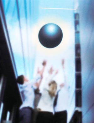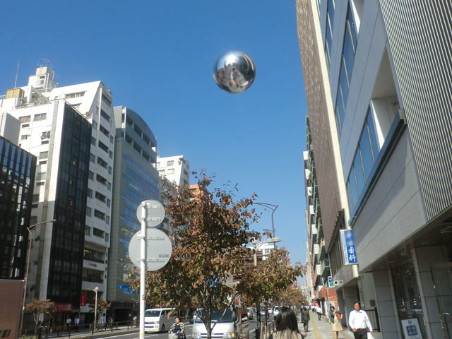 ■ 空と金属の玉2 (この記事への固定リンク) 相変わらず金属の玉を持ち歩き、投げて写真を撮ったりしているわけだが、 いつも通っている駅に出ていた広告を見て驚いた。