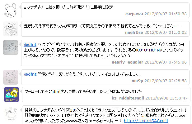 なんと、6名もの方が自分のアイコンに変なイラストを設定してくれており、本当に驚いた。 一時的なものですぐに戻すとはいえ、それで大丈夫なのか・・・。