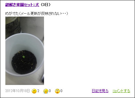 おまけに、知らない人からコメントが付き、メール投稿のやり方も教えてもらった。 これは小松菜の種なので、このままバッチリ収穫できてしまうのではないか。