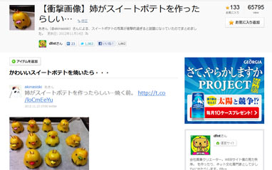 ■ 姉がスイートポテトを作ったらしい…まとめ (この記事への固定リンク) ツイッターで、スイートポテトを焼いたらすさまじいものに変貌してしまった写真が 大きな話題になっていたのでまとめました。