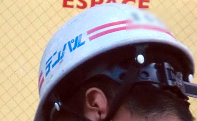 珍しいはしご車?のようなものがあったので、写真を撮ったのだが、 そこに映っていた作業員の方のヘルメットにはこう書かれていた。