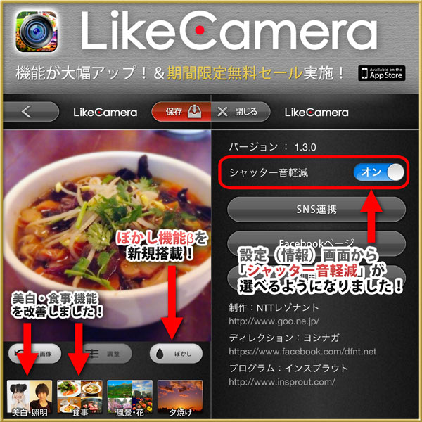 ■ Likeカメラ新バージョン (この記事への固定リンク) iPhone用のカメラアプリ、Likeカメラがバージョンアップしました!