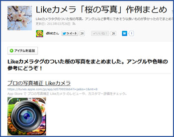 ■ Likeカメラ「桜の写真」作例まとめ (この記事への固定リンク) 僕の作っているカメラアプリ、「Likeカメラ」のユーザーがtwitterにアップしている 桜の写真がどれもすごくきれいだったのでまとめてみました。